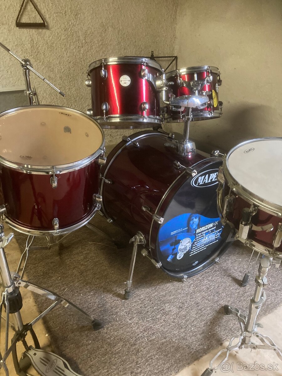 Predam bicie mapex Horizon. K bicim davam hardware + stoličku mapex. Rozmery bicich: velky bubon,,22”,snare ,,14”, tom tom ,,10”, tom tom II ,,12”, kotol ,,14”. Sadu predavam bez činelov a šlapky. Iba sada+ hardware+ stolička. Bicie su ako nove.