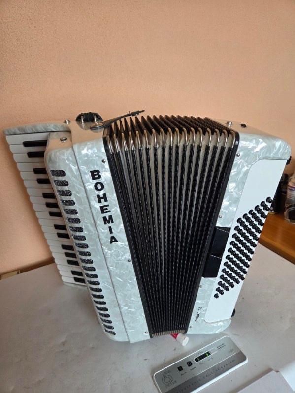 Predám krásny 72-basový akordeón Weltmeister BOHEMIA PIRAT v krásnej perleťovej farbe s púzdrom vo výbornom stave. Cena je 730€.