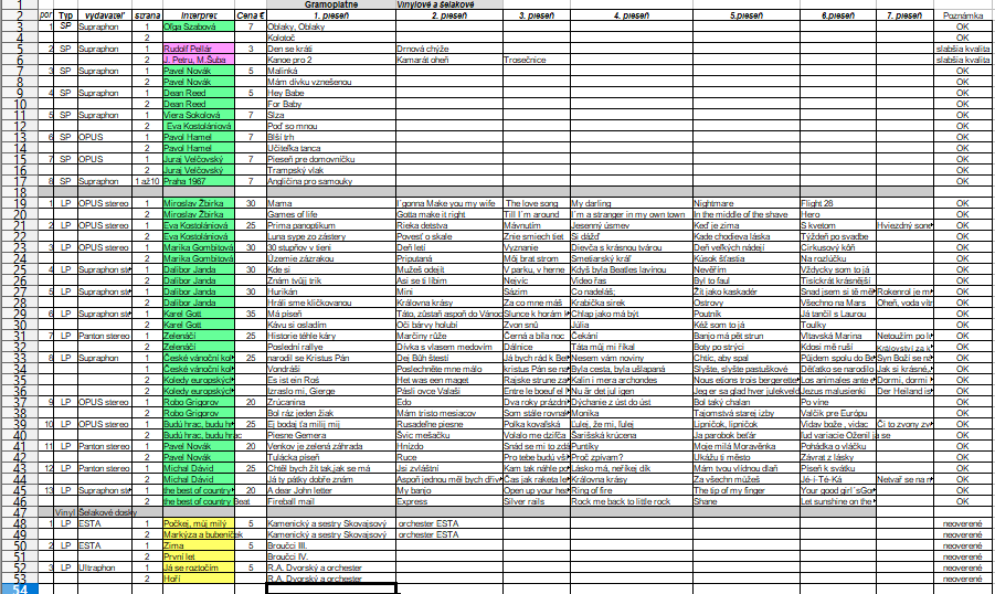 Poznamka: predané Gott-Má písen̈, a D.Janda-Hurikán.
