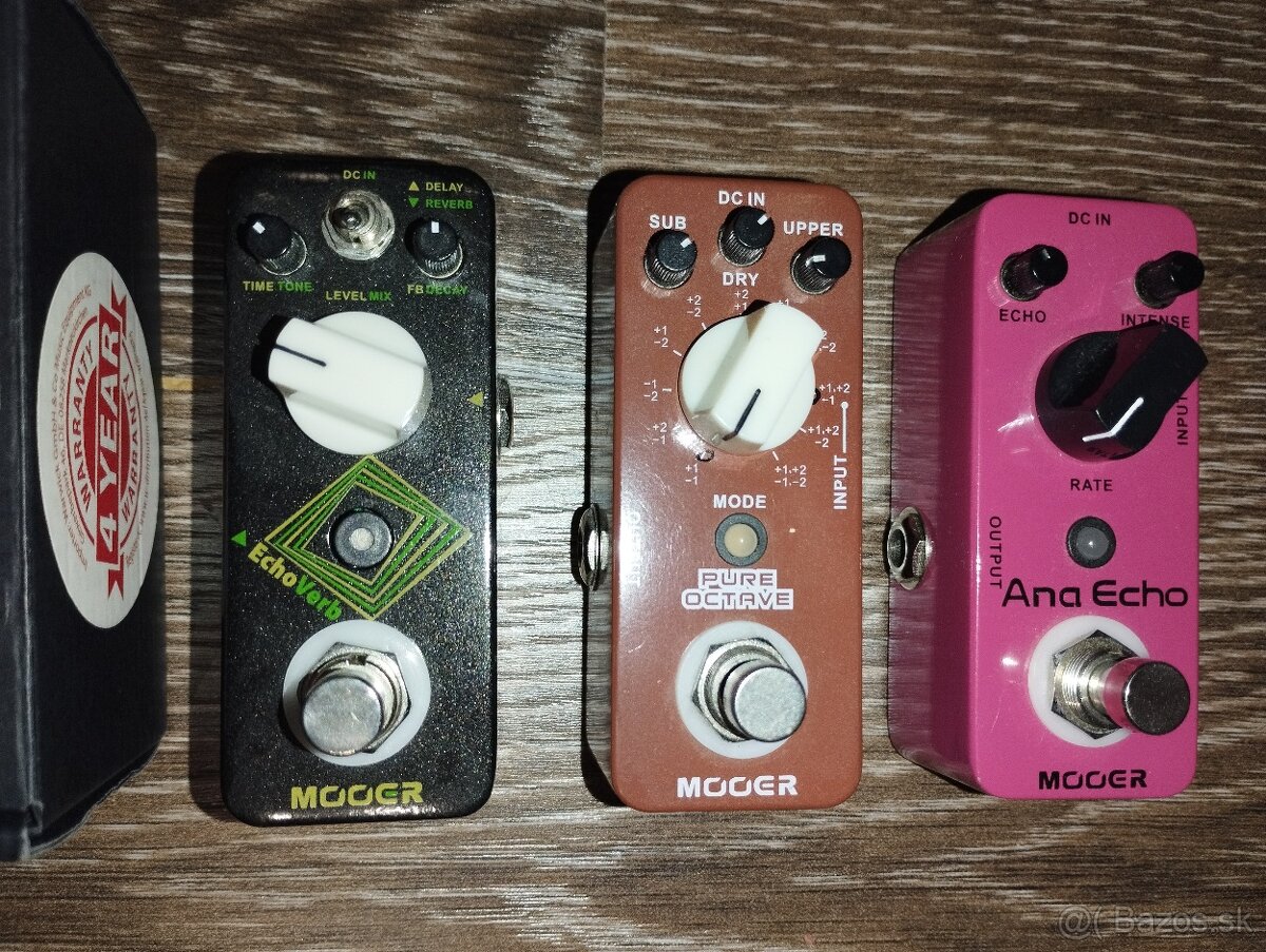 predám mooer pedále, vid foto, k dvom mám aj krabice, predávam kvoli tomu, že mám hrozne veľa pedálov doma, tieto som mal na domáce hranie/cvičenie, cena spolu