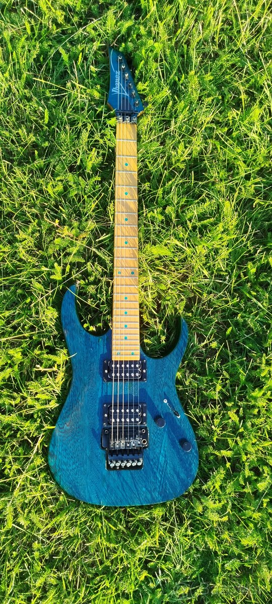Predám Ibanez RG-565 originál "japonka" z ranných 90tiek. Za tie roky je to krásne vyhratý nástroj. Na gitare bol spravený nový zeleno/modrý finish.