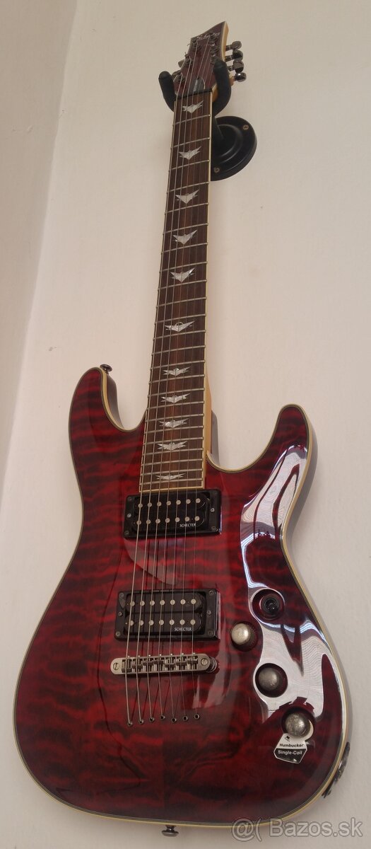 Predám SCECTER OMEN EXTREME 7 Black Cherry, ako nová, bez odrenín, bez škrabancov, používaná iba v byte, nikdy nebola vonku, nebola ani prenášaná okrem doručenia z obchodu. Kúpená 30.10.2015 z Nemecka, hmatník rovný. Cena: 450 eur.