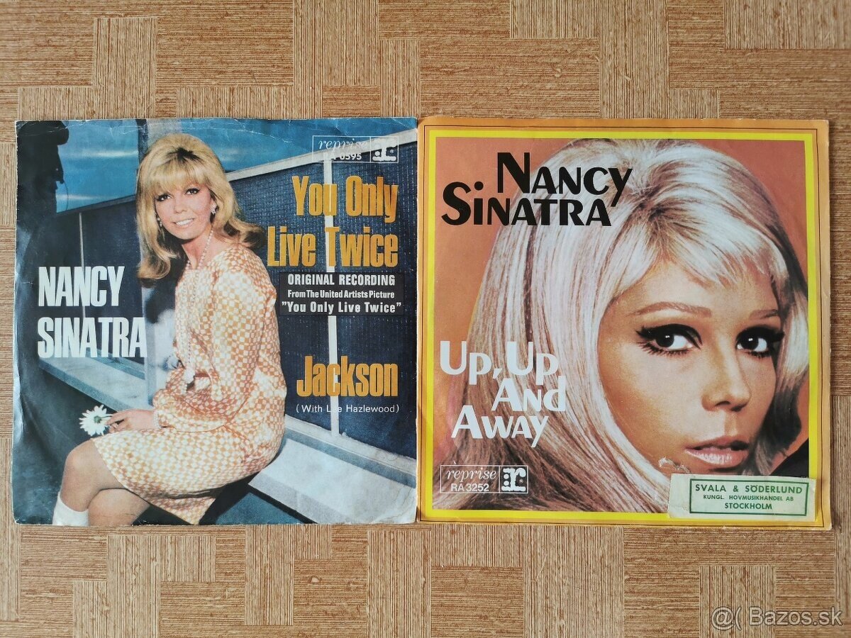 Zdravím, predám tieto dva 7" vinylové single NANCY SINATRA. Oba vinyly sú pôvodné vydania zo 60-tych rokov. Sú v stave NM. Stav obalov vidno na fotkách. Predám len oba spolu za 5€ + poštovné.
