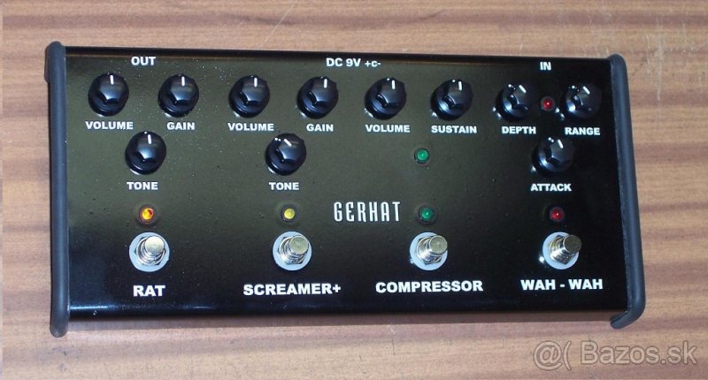 Analógový multiefekt obsahuje štyri samostatne nastaviteľné a prepínatelné efekty. Všetky efekty sú True Bypass. Je ich možné ľubovoľne obmieňať, prípadne doplniť podľa priania zákazníka. Výhodou takéhoto riešenia je mať viac efektov pokope , bez zbytočného prepájania káblami s jedným spoločným zdrojom napätia. Taktiež odpadá potreba True bypass lišty.